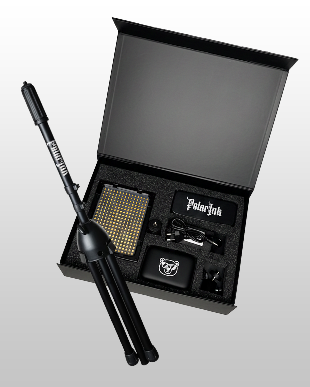 A PolarInk é um kit de iluminação polarizada que tira aquele brilho chato da pele enquanto você tatua.