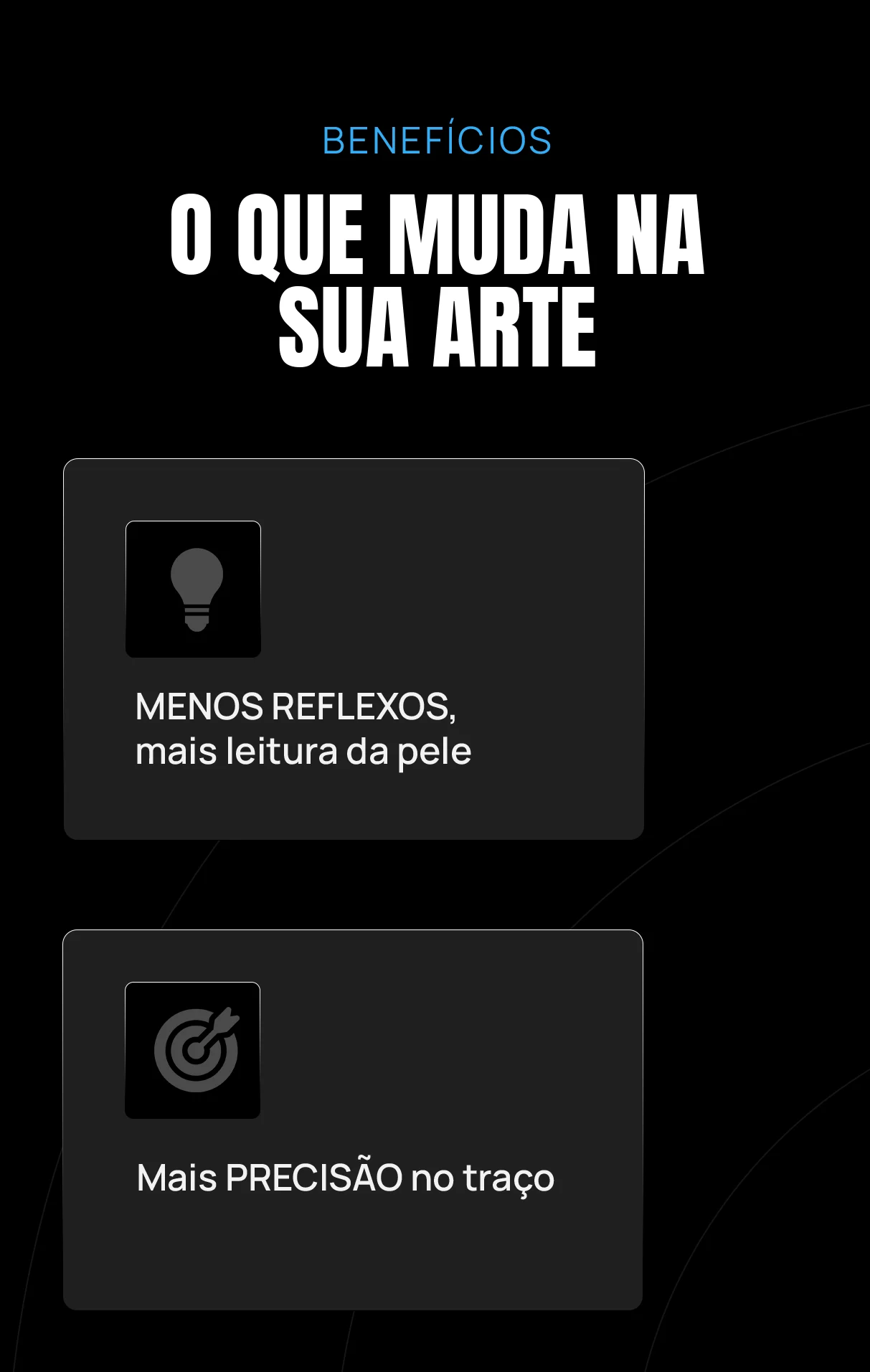 Na prática, isso deixa tudo mais nítido: você enxerga melhor o traço, vê os detalhes finos com mais segurança e não fica brigando com reflexo.